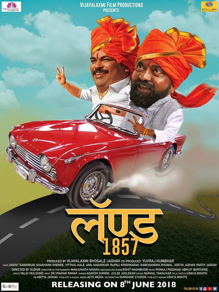 "Land 1857 (लॅण्ड १८५७)" movie releasing on 8, June 2018, the movie stars Jayant Sawarkar and Shashank Shende in prominent role, the movie is directed by Sudhir and produced by Vijayalaxmi Bhosale Jadhav under the banner Vijayalaxmi Film Productions.